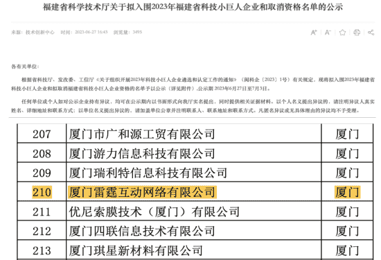 此次再次入选福建省科技小巨人企业既是对雷霆互动创新能力的认可,,也是对市场发展潜力及综合实力的高度肯定。。
